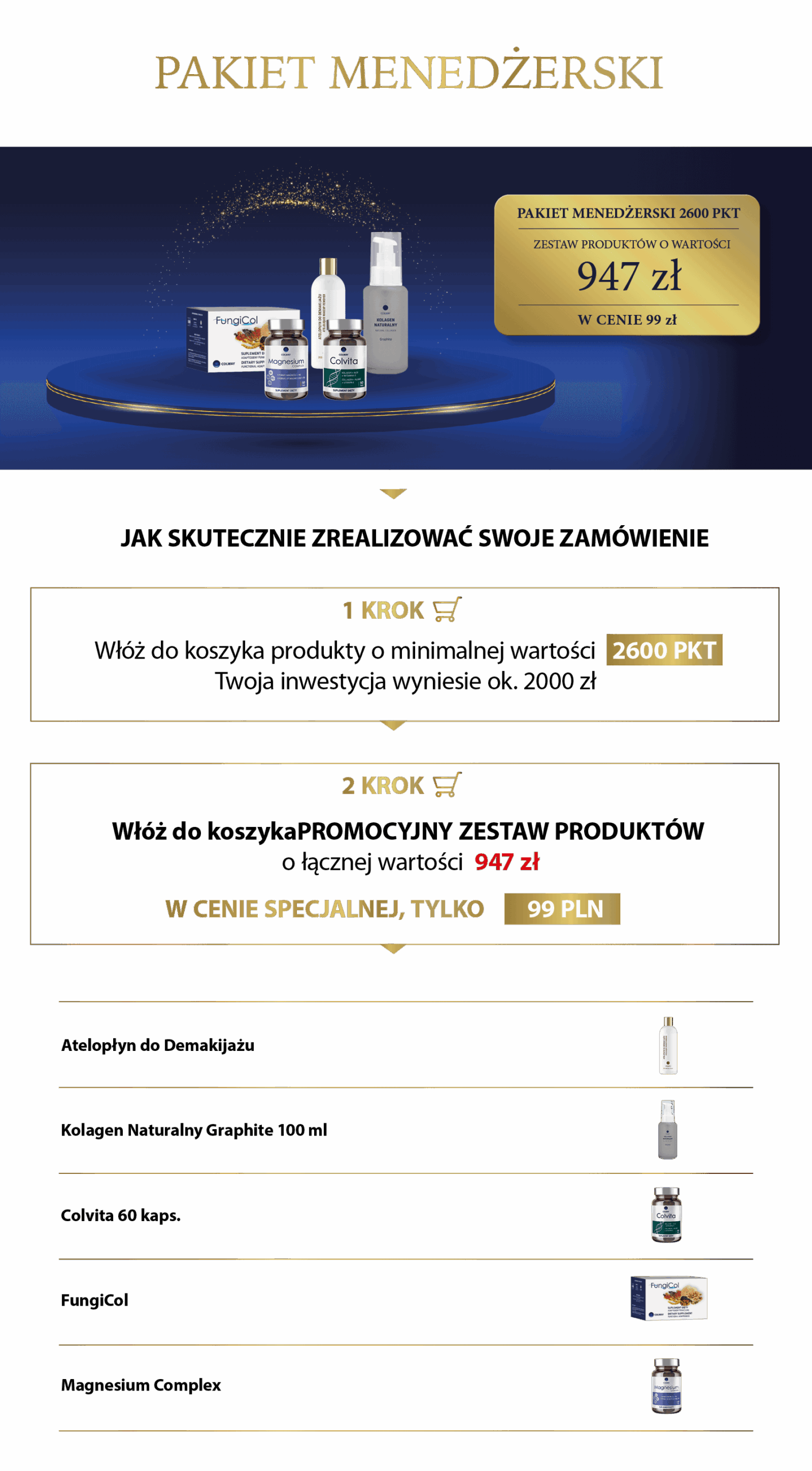 - Zakupu Pakietu Menedżerskiego 2600 PKT mogą dokonać wyłącznie Menedżerowie.