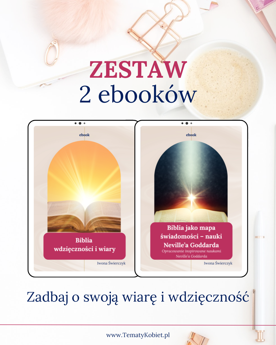 Ten wyjątkowy zestaw to połączenie dwóch duchowych przewodników, które pomogą Ci zrozumieć i doświadczyć mocy wiary, wdzięczności i świadomego tworzenia swojego życia.